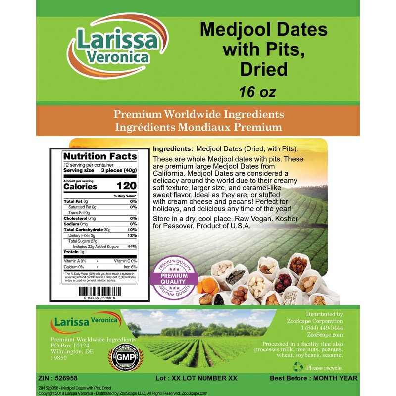 Medjool Dates with Pits, Dried (16 oz, ZIN: 526958) - 2 Pack