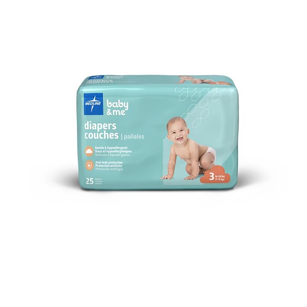 Medline Disposable Baby Diapers, Size 3 (16-28 LBS), Case of 200