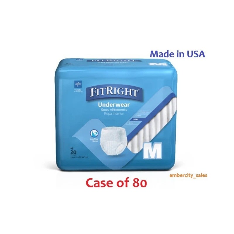 Medline FitRight Ultra Protective Underwear Case of 80 Size: Medium - Waist Size 28"-40"