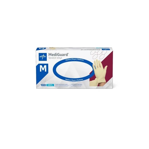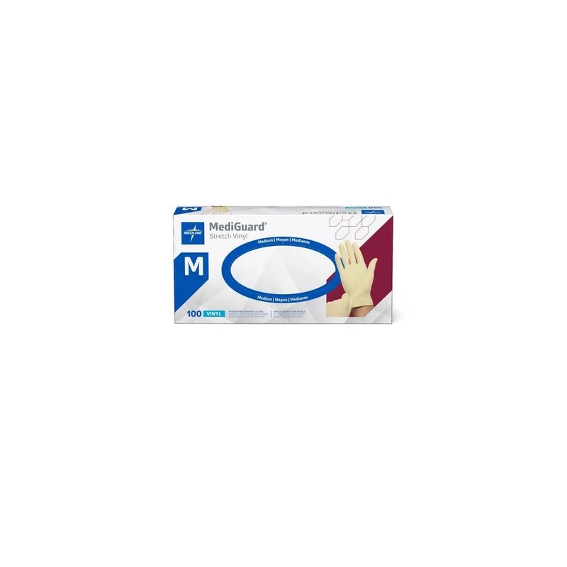 MEDLINE items can only ship to a physical address (NO PO BOX).1000 Each / 10 box / 1 Carton / CaseMediGuard Stretch Vinyl Synthetic Exam GlovesFeatures & Benefits: MediGuard stretch vinyl synthetic exam gloves are an economical choice Beige, stretch vinyl gloves are powder-free For more information on this product and its ingredients please click here Product Specs: Accelerators: No Chemo: No Clinical Classification: Critical Clinical Practice Change: No Color: Cream Glove Size: Medium Material: Vinyl Product Type: Exam Gloves Sterile: N Texture: Smooth UNSPSC: 42132203 Item Description:MediGuard Powder-Free Stretch Vinyl Exam Gloves, Size MItem Specifications: Accelerators: No Chemo: No Clinical Classification: Critical Clinical Practice Change: No Color: Cream Glove Size: Medium Material: Vinyl Product Type: Exam Gloves Sterile: N Texture: Smooth UNSPSC: 42132203 Manufacturer: MEDLINE Latex Info: Made With Latex Manufacturer Product Number: MSV602 HCPC Code: A4927 EAN/UPC Code: 40884389130477 Disclaimer: HCPCS codes and HSA/FSA eligibility information provided by Medline are intended as general guidelines only. Medline does not guarantee coverage or reimbursement of any products. You must address all coverage and reimbursement concerns with your individual payer(s) and/or plan administrator. Shipping Specifications: Dimensions: 10.0x10.25"x12.38" Gross Weight: 12.15 Unit Weight: LB