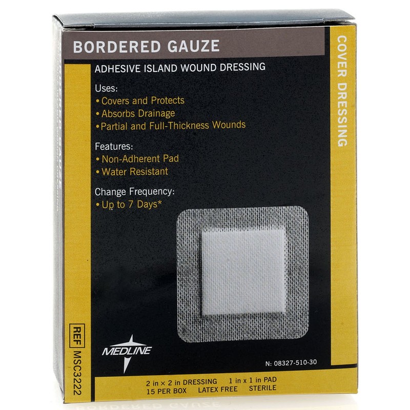 Medline Bordered Gauze, 2" x 2" Adhesive Island Wound Dressing, Sterile, 15 Count