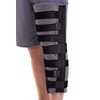 * Made with 3/8" (1 cm) foam laminate material with a hook compatible outer layer. * Movable medial and lateral stay pockets can be placed at any position orangle. * Three posterior stays are removable and malleable for acustomized fit. * Alternating 1-1/2" (3.8 cm) loop lock straps provideeven compression. * 2" (5.1 cm) patellar compression strap helps preventswelling. * 19" (48.3 cm) L, 29" (73.7 cm) Circumference Thigh, 21" (53.3cm) Circumference Calf.
