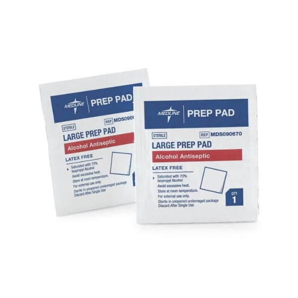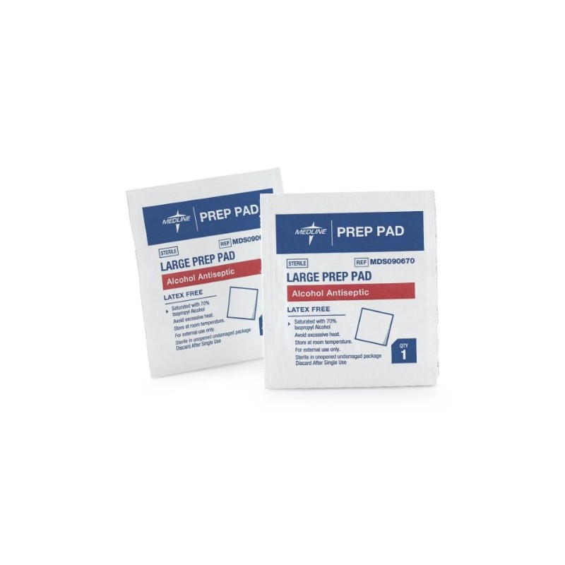 Medline Sterile Alcohol Prep Pads, Large, 100 Count
