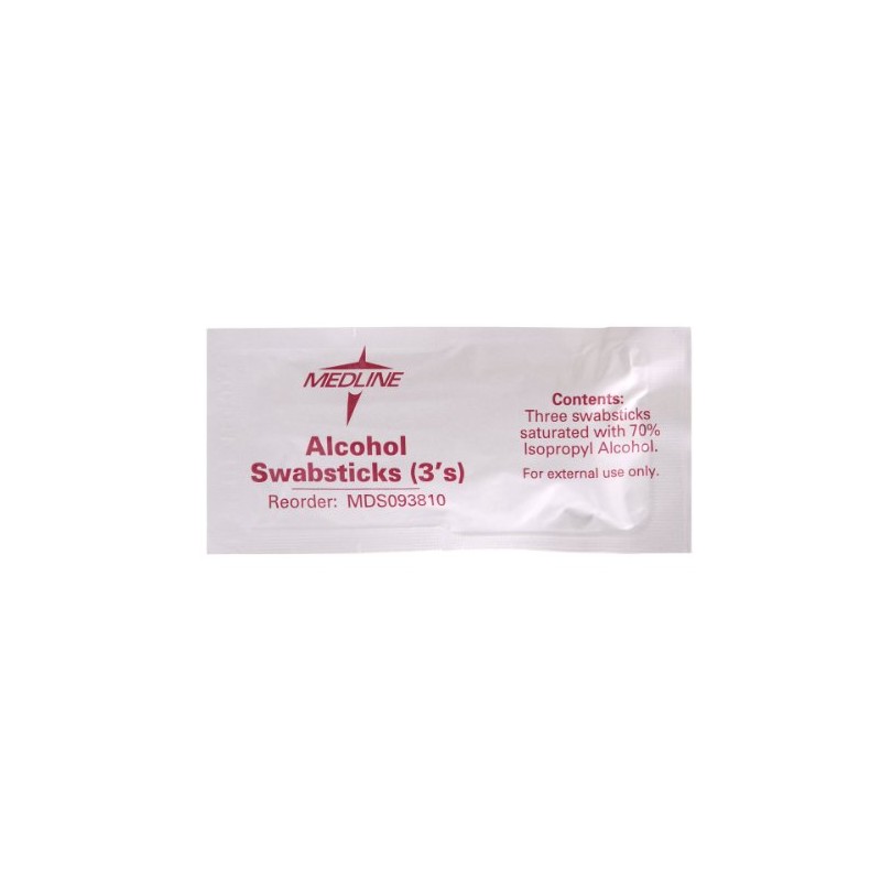 Medline Sterile Alcohol Swabsticks, 3/Pack, Ideal for Medical and Home Use, Pack of 25