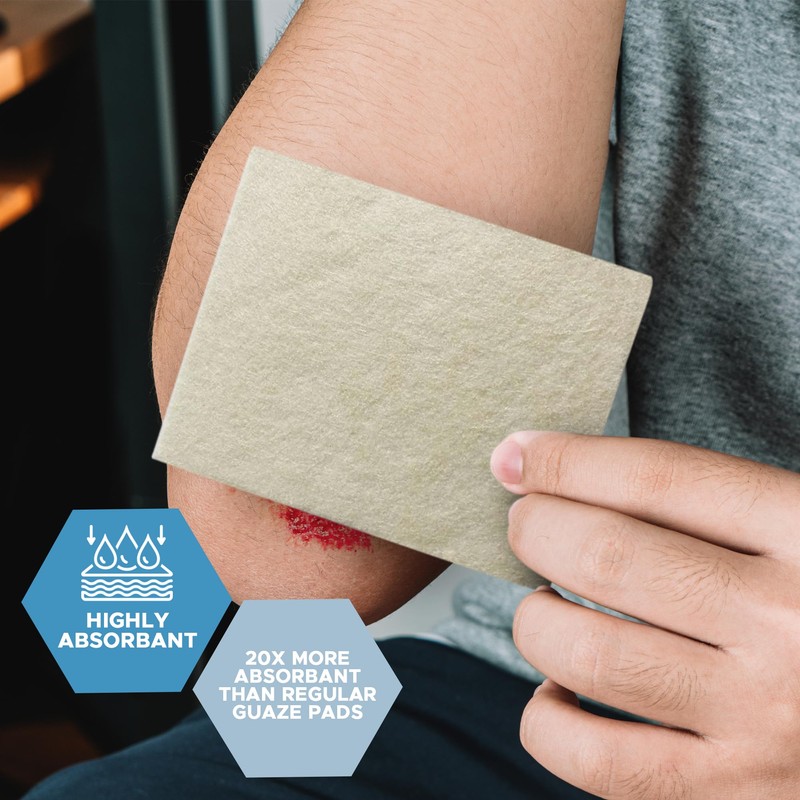- THE SUPERIOR ALTERNATIVE TO GAUZE PADS: Created from seaweed fiber layers (alginate), our wound dressing is up to 20x times more absorbent than regular gauze pads, it does not scratch, irritate or stick to the wound, making for super easy changing and removing