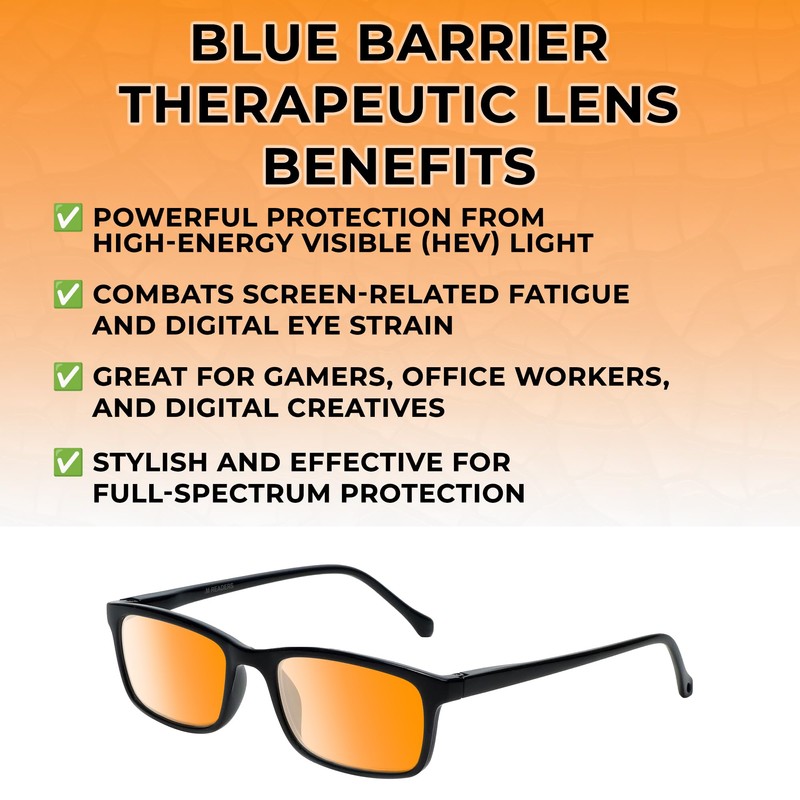 - Blue Barrier Deep Red Lenses: Enhance your emotional well-being with Blue Barrier Deep Red lenses designed to promote feelings of happiness, sociability, and confidence through color therapy. These versatile glasses may help reduce light sensitivity, alleviate migraine symptoms, and shield eyes from LED and fluorescent lighting. Ideal for professionals like dental assistants, offering potential relief in bright settings while serving as blue light-blocking and UV-protective eyewear.