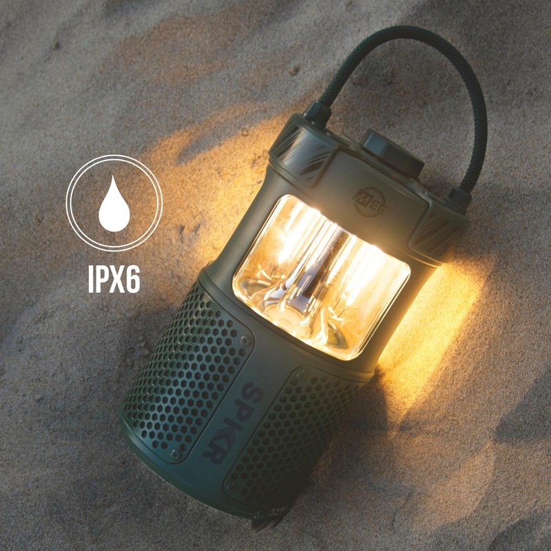 - 360° WIRELESS SPEAKER + BUILT-IN CAMPING LANTERN: The lightSPKR combines a powerful Bluetooth speaker with a dual-mode camping lantern so you can bring your soundtrack with you to the great outdoors. A dedicated control knob lets you easily adjust brightness and switch the color temperature of the lantern between warm yellow and bright white.