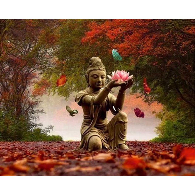 Meecaa Paint by Numbers Buddha Lotus Butterfly Kit for Adults Beginner DIY Oil Painting 16x20 inch (Buddha, No Frame)