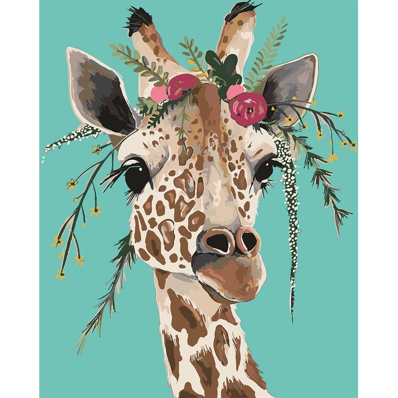 Meecaa Paint by Numbers Flower Giraffe Kit for Adults Beginner DIY Oil Painting 16x20 inch (Giraffe, No Frame)