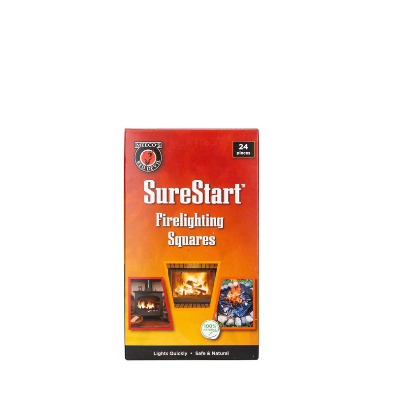 MEECO'S RED DEVIL Surestart® Firelighting Squares Pack of 24 - Quick Lighting for Indoor/Outdoor Fireplaces, Wood Stoves, Pellet Stoves, Campfires, Fire Pits, Smoker Grills, & Pizza Ovens