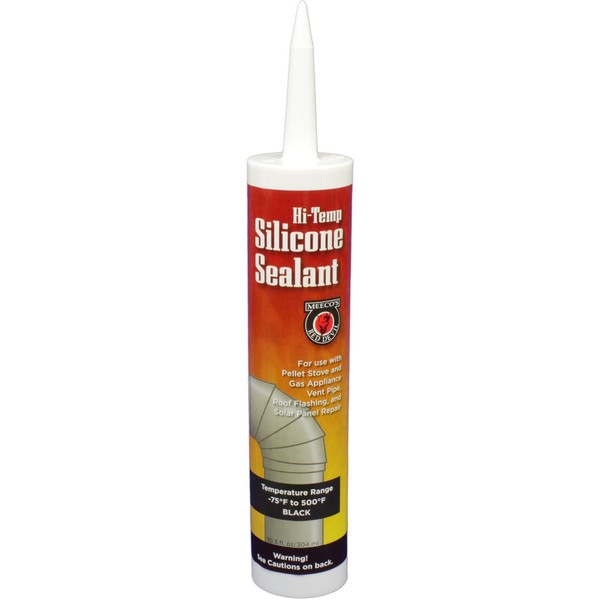100-Percent RTV Silicone Sealant that forms a tough rubbery adhesive seal and maintains integrity at 450-Degree F continuously and 500-Degree F intermittently. Ideal for sealing pellet stove flues and gas appliance vent pipes. Indoor and outdoor use. Adheres to metal, glass, plastic, fiberglass, aluminum, wood, brick and slate. Black in color.