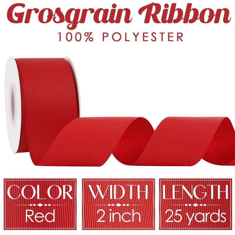 - Solid red color grosgrain ribbon. Made from high-quality polyester material that is strong and long-lasting, making it perfect for all your crafting and decorating projects. This 2-inch woven grosgrain ribbon has a beautiful sheen, vibrant color, and the perfect consistency for shaping hair bows as well as other craft projects: it is sturdy, but not too stiff! Use it for all your gift wrapping and crafting needs for a touch of elegance.