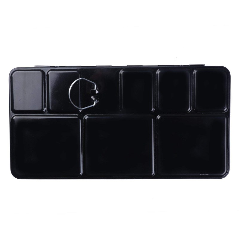 - Sturdy, reusable, and feature a black enamel exterior and white enamel interior with foldout palette wells