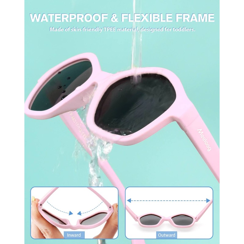 - [WATERPROOF & FLEXIBLE FRAME] Meeloog kid's sunglasses frames are made of TPEE material. The frame weighs only 0.5oz. Flexible and waterproof glasses make wearing more comfortable.