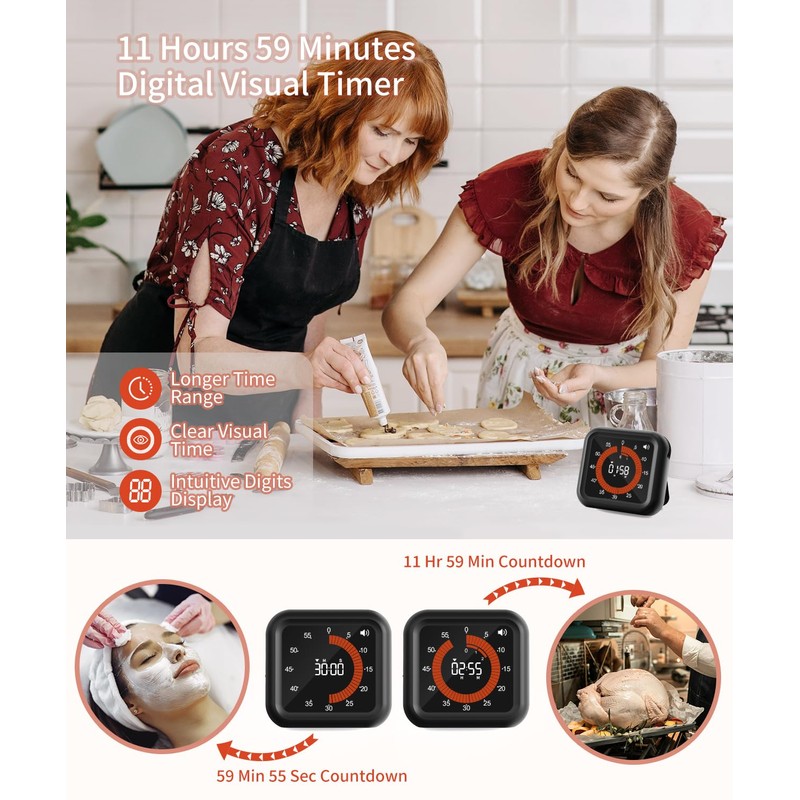 - 【Digital Visual Timer with Hour Setting】Different from the traditional digital timers, it has a distinct visual part to show the exact time as the digits show. Large VA display makes the time clearly visible. And it can be programmed up to 11 hours 59 minutes, making it suitable for a variety of usages as cooking, housework, workout, game, meeting and other activities