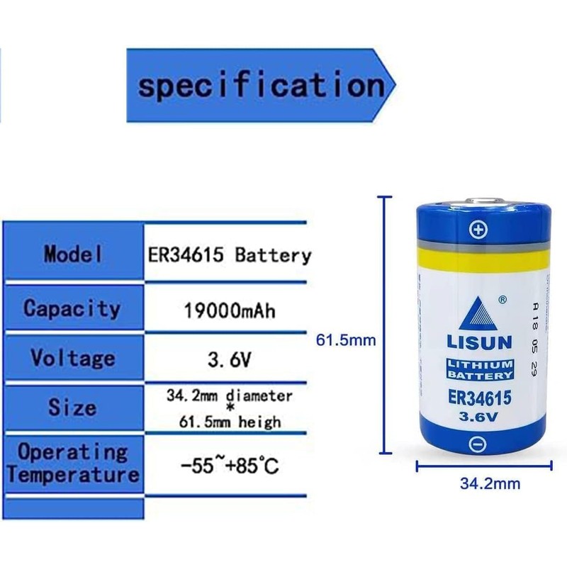 • 🔋 【ER34615'Specifications】Capacity: 19000mAh;Voltage: 3.6V.Weight: 113g