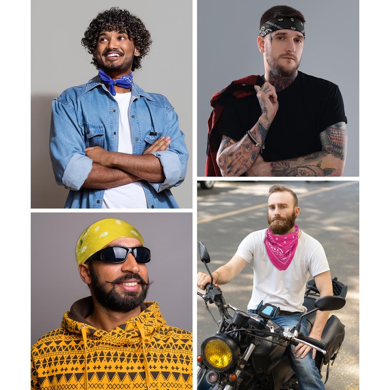 - Multi-purpose bandana: Our bandanas can be used as handkerchiefs for men, face scarves, face masks, headbands, men's neckerchief, cycling masks, scarves, wristbands, cowboy theme accessories, bag decorations and gift wrapping, etc. Give full play to your creativity to make fashionable and fun outfits