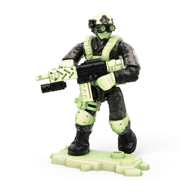 - Collectible figure comes with glow-in-the-dark effect, night vision goggle accessories and signature detachable weapon