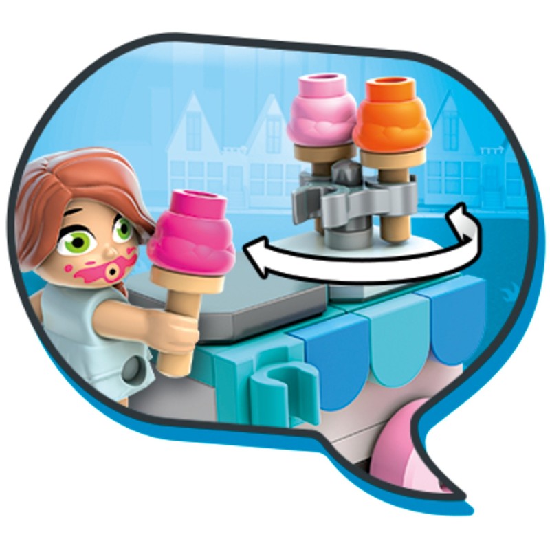 - 2 buildable city-themed mini figures include 1 hungry customer and 1 ice cream vendor