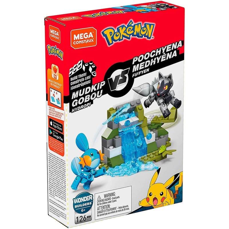 - MEGA CONSTRUX: Spray water on the battlefield with Mudkip and Poochyena!