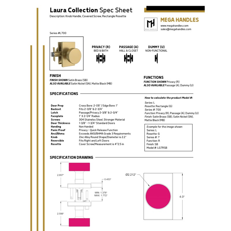 Mega Handles - Laura Privacy I Door Knob for Hallway, Closet and Bathroom I Reversible Heavy Duty Design I Fits All Standard Door Sizes I Screws Included - Polished Chrome (1 Pack)