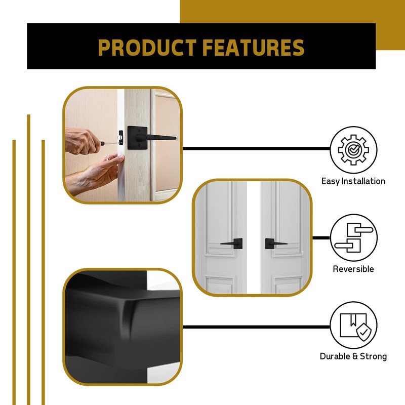 • ✅ FULLY REVERSIBLE DESIGN - Its reversible design makes our Door Lever Handles very versatile as they can be installed on both left-handed and right-handed doors of all standard sizes – all thanks to the adjustable latch!