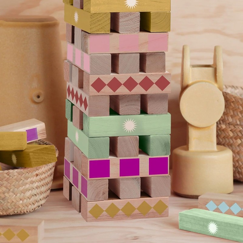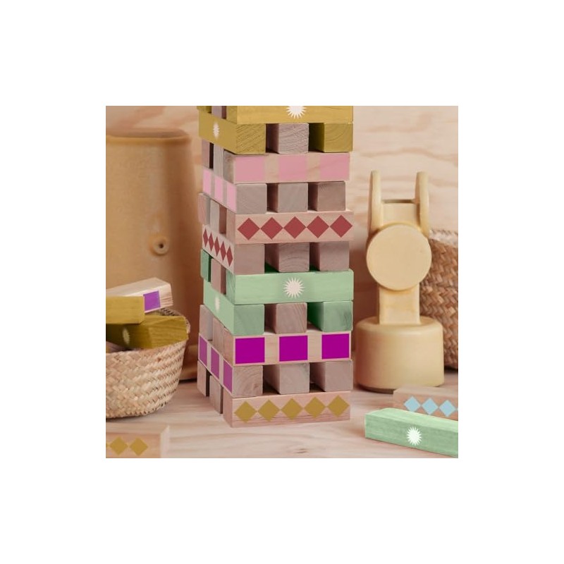 Get back to basics with our collection of classic games made from natural wood. With an eclectic mix of colourfully printed blocks, this jumbling tower is a playful staple for any home. Perfectly sized for little hands, these mega jumbling tower blocks are made from natural wood for an earthy feel, ideal for the whole family to have fun with. Enjoy vibrant, hand-painted prints and bright colours with the Majorelle mega jumbling tower game set.