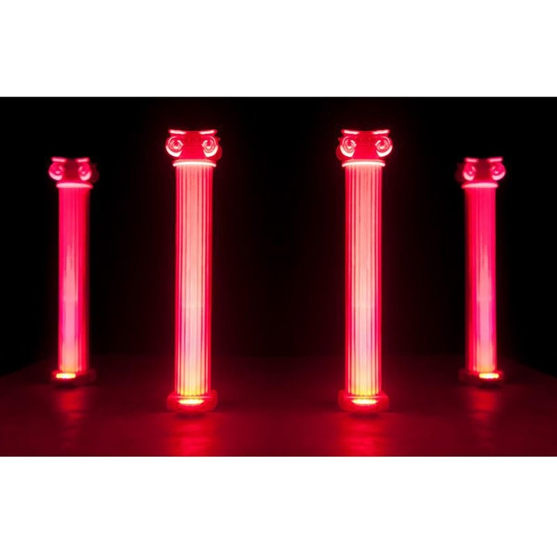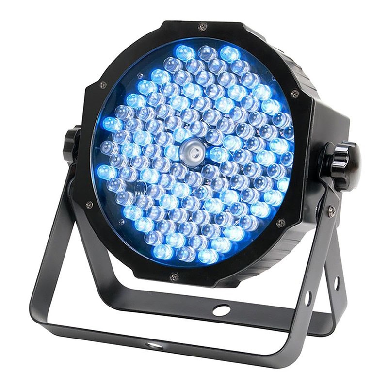 - Source: 107x 10mm LEDs (26 Red, 45 Green, 36 Blue LEDs) + 1 3W UV LED) Light output: 345 LUX @ 2M; 92 LUX @ 4M (30-degree beam) Beam Angle: 30 degrees Long Life LEDs (50,000 hrs.)
