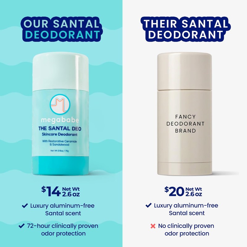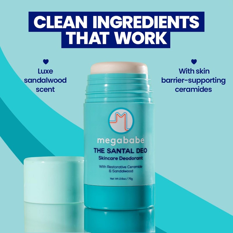 Megababe Skincare Deodorant - The Santal Deo with 72 hour Odor Protection | Restorative Ceramide & Sandalwood | Aluminum-Free, All Natural | 2.6 oz