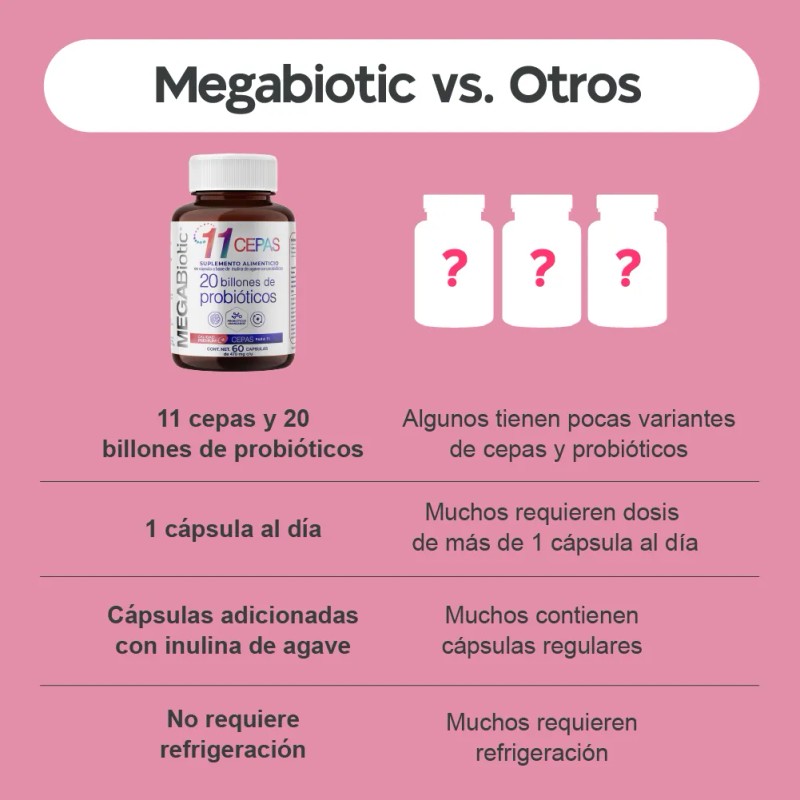 Megabiotic 11 Cepas 20 Billones De Probióticos 60 Cápsulas Sin sabor
