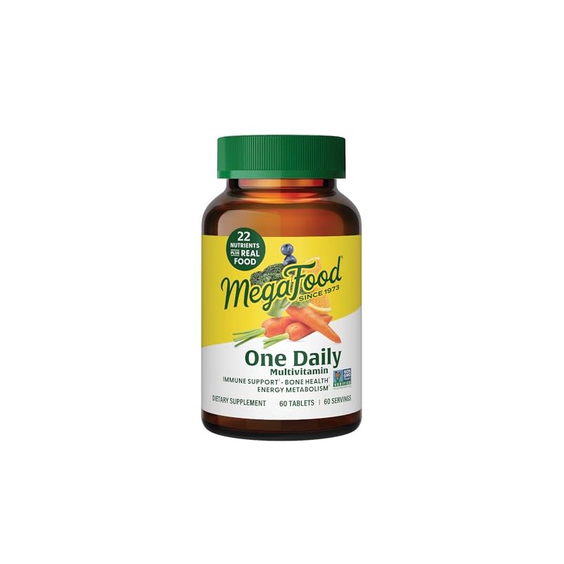 MegaFood MegaFood One Daily Multivitamin - Multivitamin for Women and Men - with Real Food - Immune Support Supplement - Vitamin C & Vitamin B - Bone Health - Energy Metabolism - Vegetarian, Non-GMO - 60 Tabs