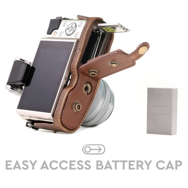 • BESPOKE FIT – The MegaGear Premium Leather Camera Case with Battery Access is specifically tailored using high quality leather for the Olympus PEN E-PL8 models for precision fit and coverage.