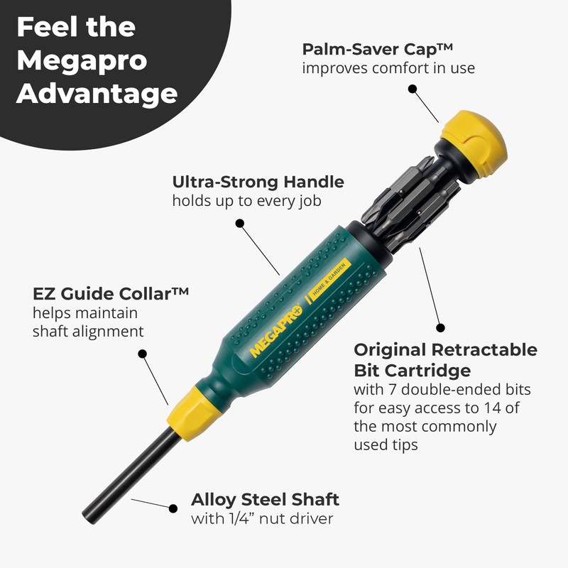 MEGAPRO® 15-in-1 Multi-Bit Home & Garden Screwdriver | Phillips bits | Square Bits | Hex Bits | Every Day Screwdriver | Kitchen Drawer Tools
