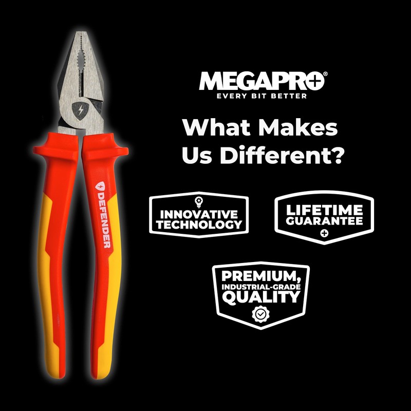 MEGAPRO® DEFENDER Pliers | Combination | 1000V VDE Certified | 8.5" Long | Insulated | Linesman | Electricians Tools