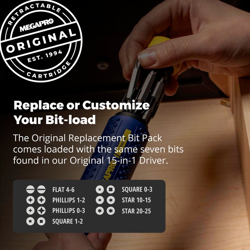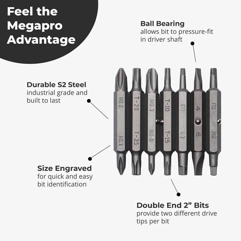 MEGAPRO® Replacement Bit Pack - The Original | 7 Double-Ended bits | Household Bits | 2" bits