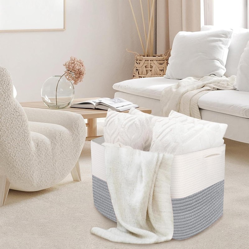 - ✔️[NOTE]: The xxl basket organizers comes folded up. It is normal for the big bins to have creases. Iron the hamper can remove the creases more quickly or stuff it with blankets for few days. The woven basket is hand and machine washable. It's built for long-term use. It's also a ideal gift basket for baby and kids