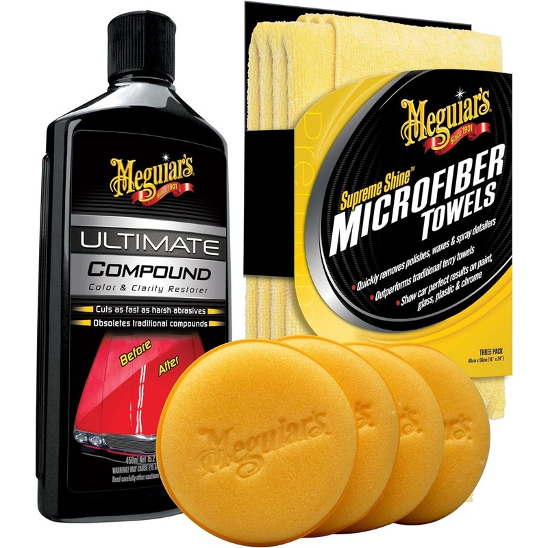 - BUNDLE INCLDUES: 16 oz Meguiar's Ultimate Compound + 4 Supreme Shine 4" Foam Applicator Pads + 3 Supreme Shine Microfiber Towels