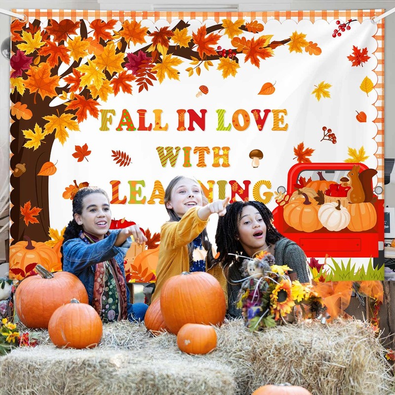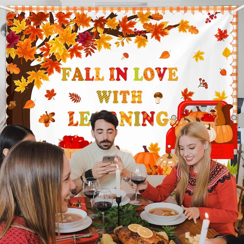 MEHOFOND 6x3.6ft Fall in Love with Learning Backdrop Autumn Thanksgiving Fall...