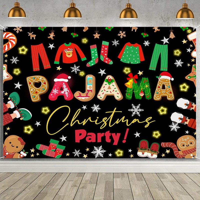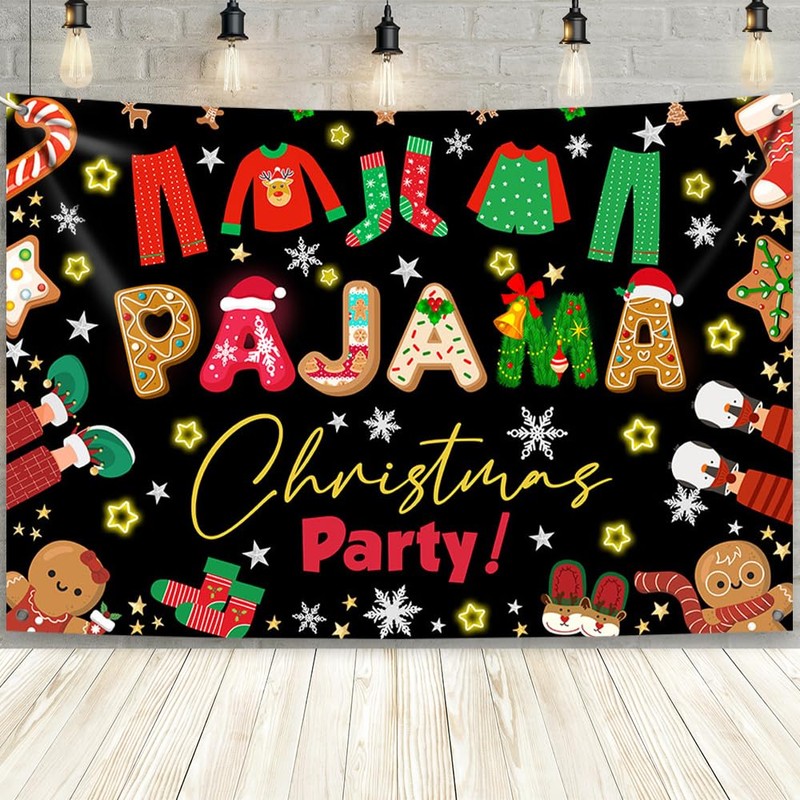 - Easy to use : The christmas pajama party backdrop banner has 4 holes in the four corners with a string and can be hung anywhere the celebration is held, on a wall, fence or other surface. Due to folded transport, it may cause creases. Please iron the back surface with electronic iron with the lowest heat