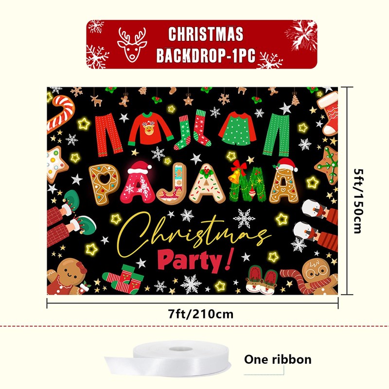 - Package and size : Includes a christmas pajama party banner and a rope. The dimensions are 7(W)x5(H)ft/210x150cm. We can also customize larger sizes or custom backgrounds