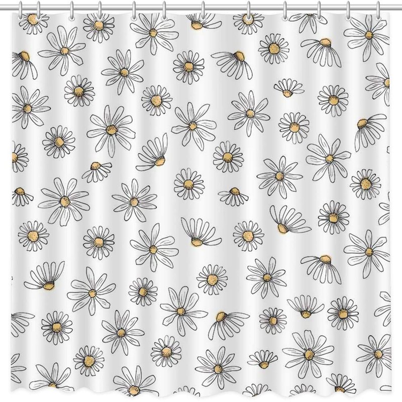 MEHOFOND Daisy Shower Curtain Cute Floral Shower Curtain for Bathroom Washable Durable Fabric Bathroom Shower Curtains 72x72 in