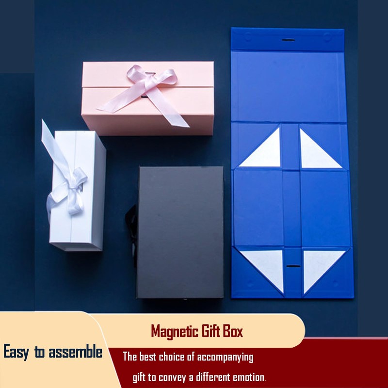 - 【Easy Assembly】With a tear-off sticker white triangle sticker to easily assemble and glue the box these gift boxes can be assembled in minutes. Gift Box with Lid Magnetic Closure For an added touch of elegance, attach the ribbon of your choice around the lid and your gift is ready to go!