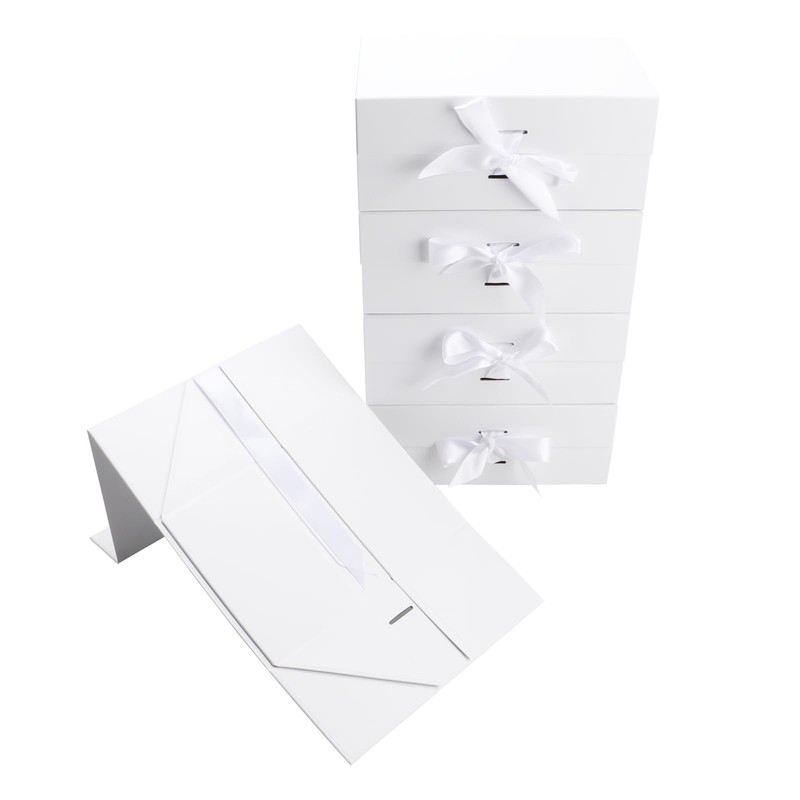 MEIANJU White Gift Boxes 10.2x6.7x4.3 Inches with Ribbon Foldable Boxes Set of 5 Glossy Finish Magnetic Gift Boxes for Luxury Presentations and Groomsmen Proposal