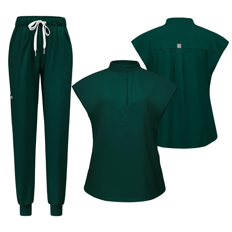 Meichoon Women's Scrubs Set Short Sleeve Stand Up Neck Top Tapered Drawstring Stretch Yoga Pants Sweat Absorbent Quick Drying Soft Wrinkle Resistant DK55Dark Green M