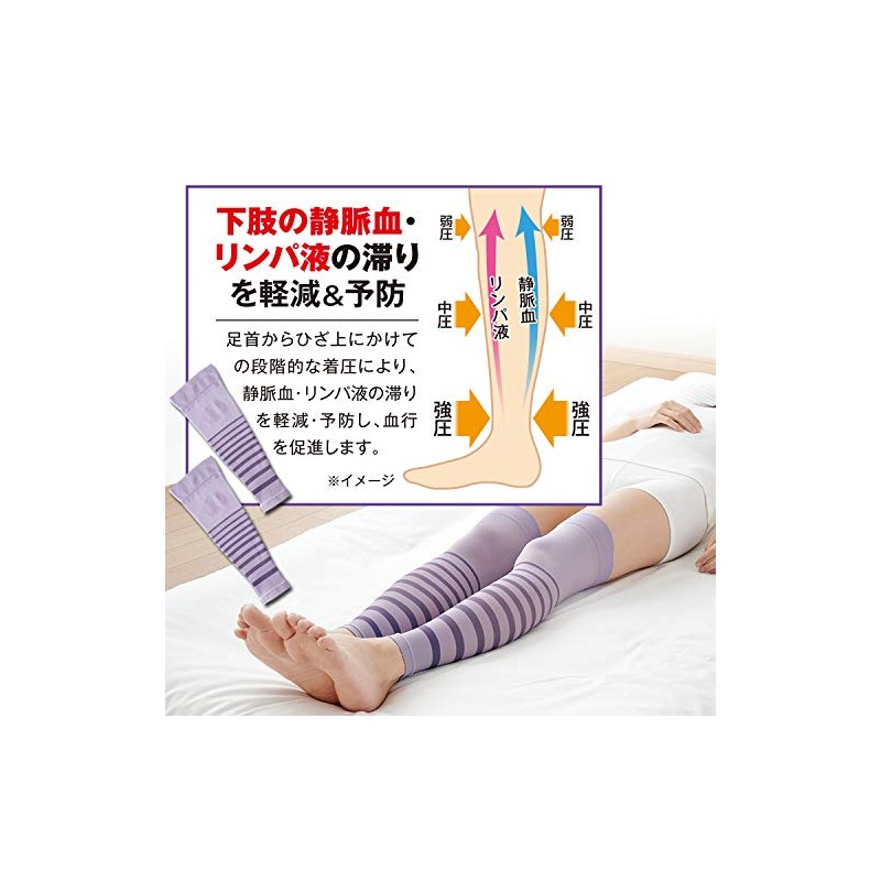 - ■商品区分:医療機器製造販売届出番号 17B3X10002004001 ■一般医療機器の夜用サポータ ■むくみ軽減、血行促進 ■朝までグッスリ安眠 ■翌朝むくみスッキリ!医療用の足楽サポーター ■医学に基づいた圧力設計で、血行を促進する夜用サポーター ■足首からひざ周りにかけての段階的な着圧効果で、血行を促進し、むくみを軽減します ■就寝時の脚に適した21.3→12.8hpaの段階着圧が、気持ち良く効果的に引き締めます 【夜に着圧サポーターを着けると良い理由は?】 ■就寝時は、立った状態に比べて重力による負荷が軽減されるので、段階着圧による ■脚へのポンプアップ効果がより効率よく行われ、むくみを軽減するのに最適 ■心臓と脚の位置が同じ高さになり、脚から上半身への血行促進がより効果的に行われます