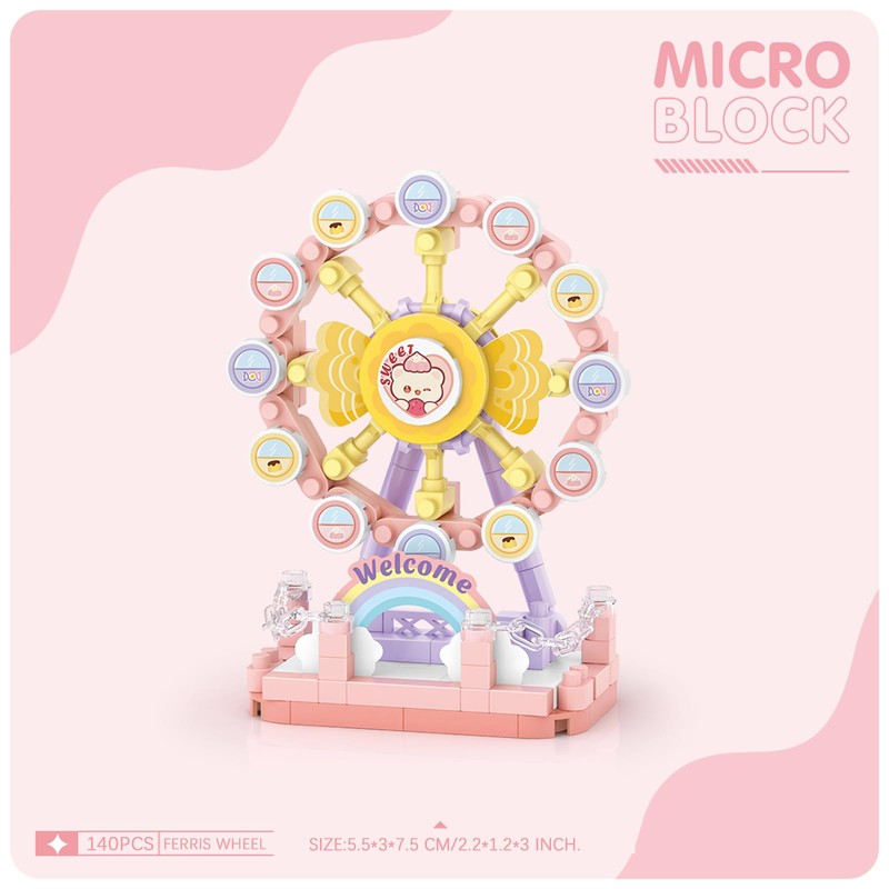 MEIEST 4 Pieces Mini Amusement Park Building Blocks Set, Simulation Architecture Collection, Particle Building Blocks, Toy