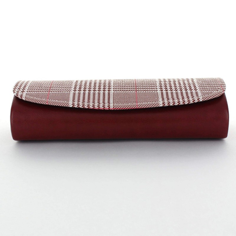 メイガン(Meigan) メガネケース おしゃれ 細 チェック柄 レッド 軽量 コンパクト セミハード 2172-02