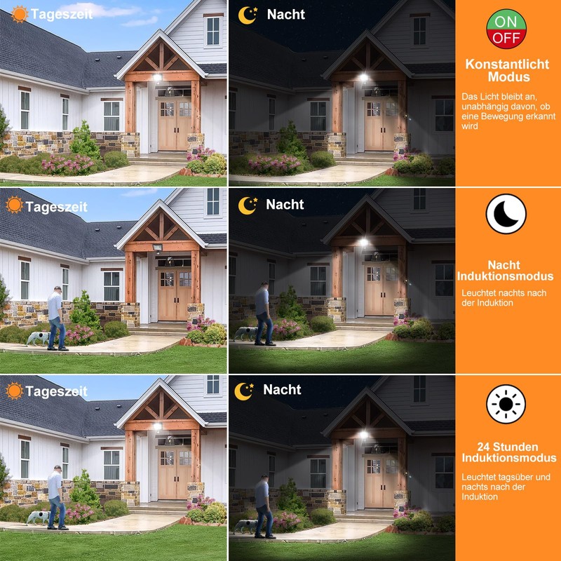 - LED spotlight with remote control: the LED spotlight with motion sensor comes with a remote control, so you can use the outdoor spotlight easier and safer with the simple and easy-to-understand remote control, and you can also adjust the buttons on the light. Always-on mode/24-hour detection mode/night detection mode; 10 brightness levels adjustable; detection distance is adjustable; induction lighting time is adjustable; timing function
