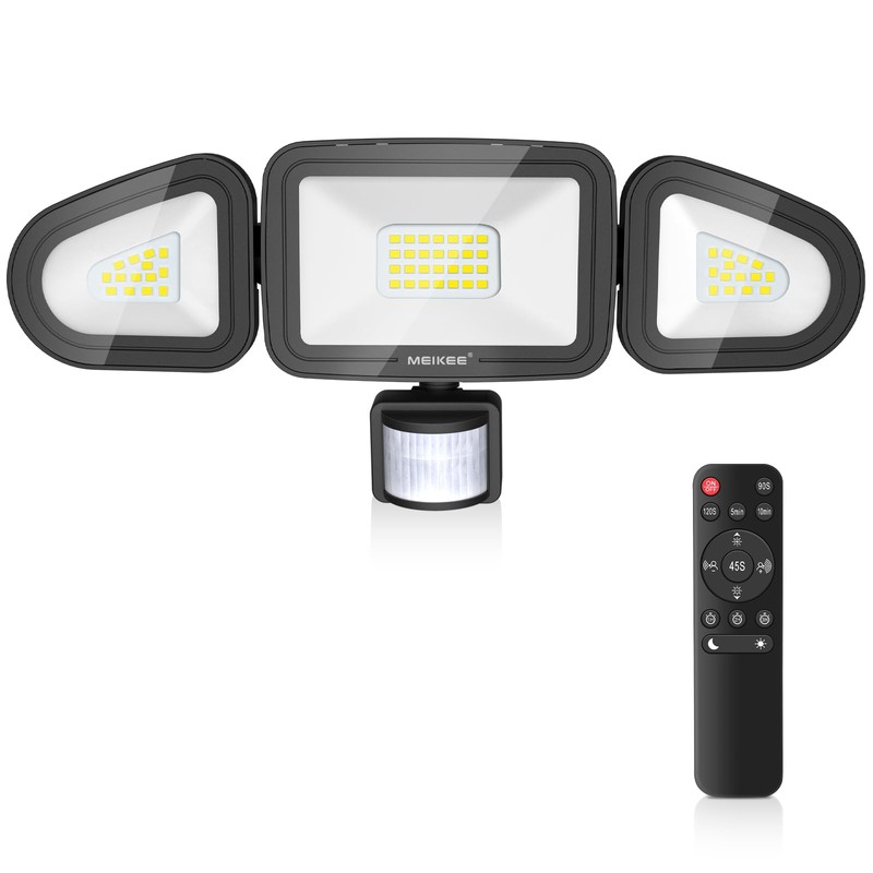 MEIKEE MEIKEE 42W Security Lights Outdoor Motion Sensor 3600LM 6500K Daylight White PIR Floodlights Outdoor 4 Modes Timing with Remote Control IP66 Waterproof 180 Adjustable for Garden Garage Doorways