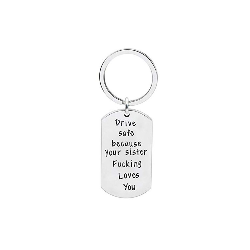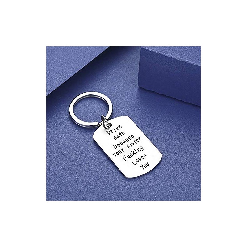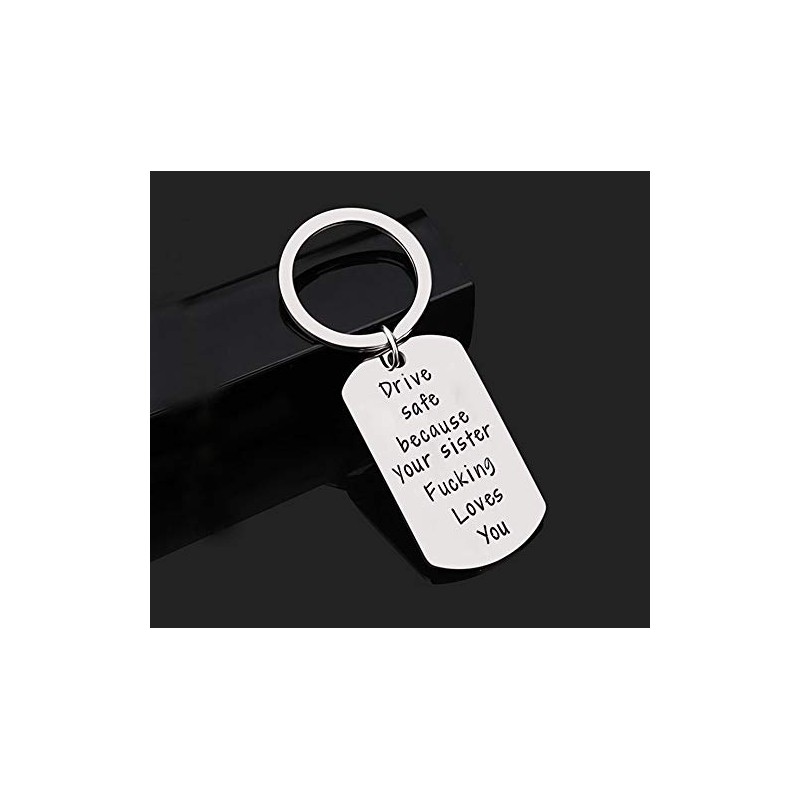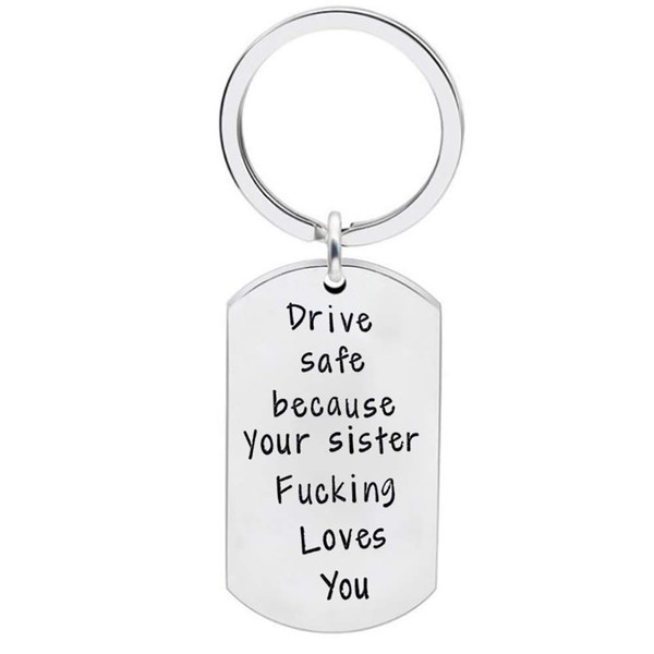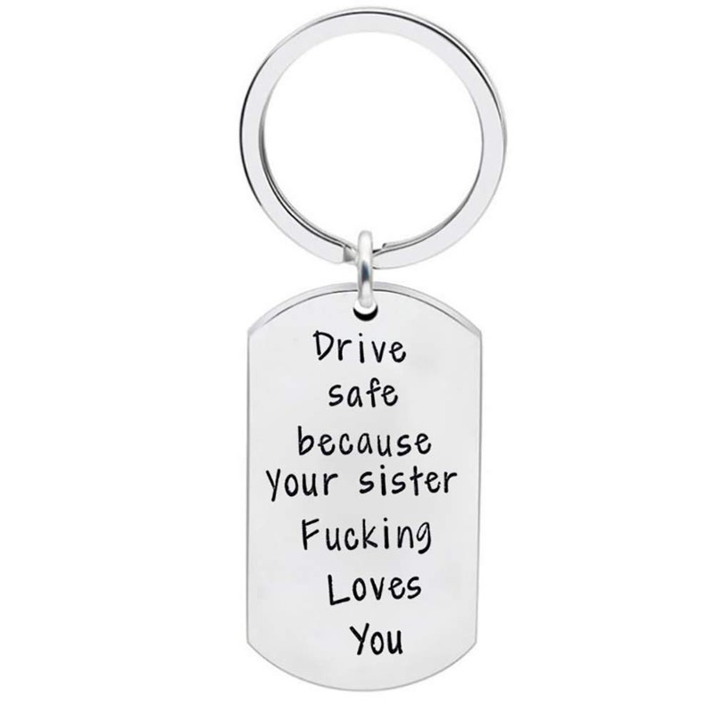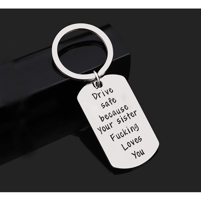 Meiligo Drive Safe Keychain - Silver, Modern Classic, Men's Gift